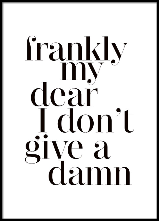 Por fim, pedi também este poster com uma das minhas frases cinematográficas preferidas de todo o sempre, do "E tudo o vento levou". É uma coisa que sinto com cada vez mais frequência, que me estou nas tintas. =) E gosto tanto, tanto deste poster que não sei mesmo onde pendurá-lo. Estou entre o escritório, o closet e o quarto. Acho que não o vou pendurar em lado nenhum e vai andando comigo de um lado para o outro.